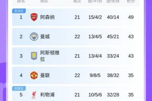 英超积分榜: