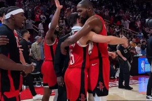 GIF-赛后杜兰特拥抱谢泼德 拍拍脑袋 申京也来拍拍