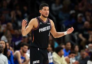 本场比赛,太阳球星布克表现出色,第三节独得16分,但因为崴脚末节没打,首发出战28分钟,投篮21中12,三分球9中5,罚球2中2,空砍31分4篮板3助攻1抢断的数据。