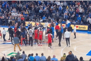 不过,在冲突期间,亚历山大和小乔丹手牵手离开战圈聊天去了。