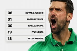 体育资讯1月30日讯 数据显示,德约科维奇在公开赛年代38次闯入大满贯男单决赛,位列历史第一。
