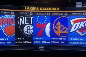 过去四场比赛,湖人取得3胜1负的出色战绩,接下来5场,他们的对手分别是:尼克斯、篮网、76人、勇士、雷霆。