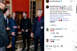 体育资讯2月1日讯 不久前,米兰旧将贝克汉姆更新社交媒体,晒出了与米兰前队友们的合照。
