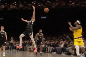GIF-詹姆斯四分卫长传助攻范德比尔特轻松扣篮