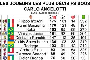 体育资讯02月05日讯 数据博主PopFoot盘点了安切洛蒂教练生涯中,他所执教球员的直接参与进球排行。其中,菲利普·因扎吉最多,本泽马第2,卡卡第3,C罗第5。