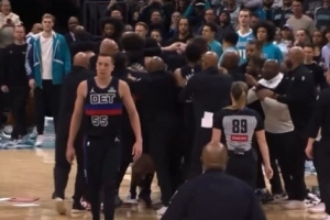 GIF-活塞黄蜂大规模冲突 邓罗瞅了一眼直接走开战圈