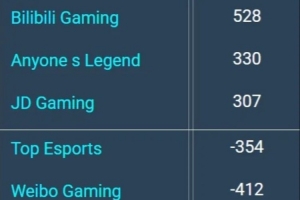 LPL第一赛段常规赛登峰组队伍前15分钟经济差:BLG第一528
