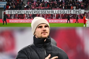 RB莱比锡官方社媒也发文与维尔纳告别:“216场比赛113粒进球,感谢你所做的一切,我们永远不会忘记你!”