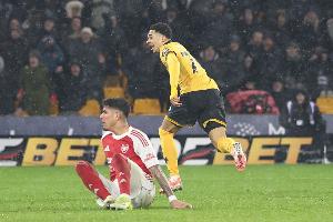体育资讯2月19日讯 在英超联赛第31轮的比赛中,狼队主场2-2战平阿森纳。面对目前的积分榜领头羊,狼队用一场绝平为英超争冠增进了一份悬念。