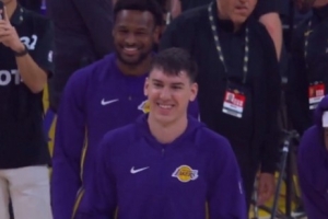 GIF-八村代替詹姆斯执行赛前仪式,多次尝试没成功,队友笑嘻了~