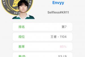 体育资讯01月13日讯 前LGD下路、现自由人选手Envyy的游戏账号以55胜10负85%胜率暂列韩服第七,目前为王者1138胜点。