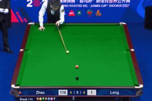 决胜局中赵心童轰出129分破百获胜,他的单手击球也引发现场观众欢呼。