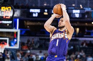 太阳球星布克本场出战26分钟,24中16,三分6中4砍下36分2篮板5助攻,正负值+5。