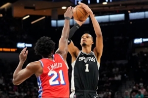 今天恩比德没法推着文班走了,而马刺60胜了——恩比德自己的话:“相信过程”。